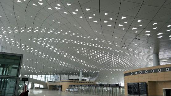 综合相关媒体报道,记者了解到新航站楼的建筑面积有3.4万平方米,主要分为上下两层,中间还有一个供旅客出站的夹层。进入的航站楼内,崭新的值机厅明亮宽敞,视野开阔。顶棚以柔和的白色为主,上面是一个个三角形的灯带,与整个顶棚形成一个起伏的花瓣状。而这些灯带也都是高科技的照明系统,不管室外光线如何,候机楼内总能根据环境自动调节。