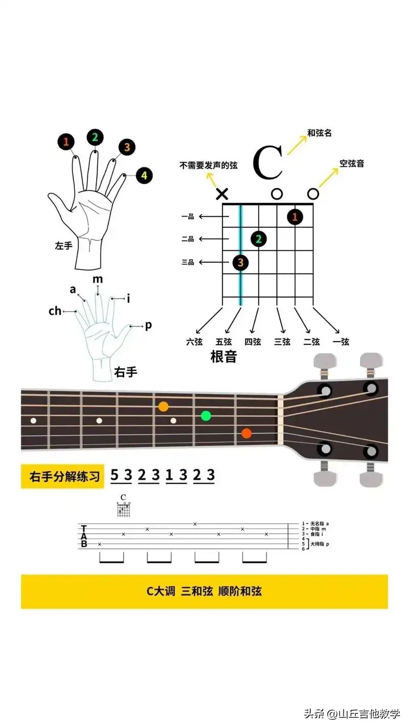 吉他基本功的练习需要持之以恒,C调和弦琶音练习是一个非常好的起点。通过系统的训练