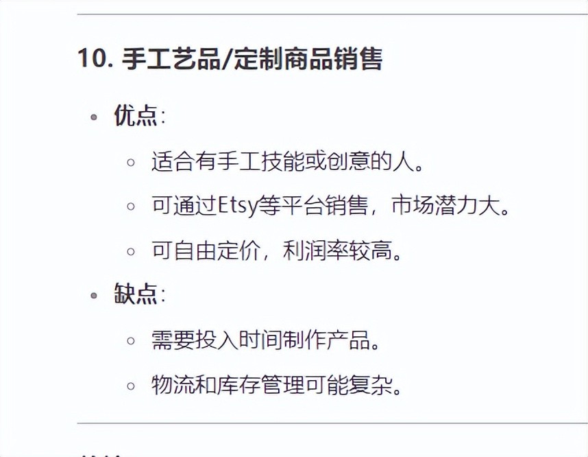 优点:适合有手工技能或创意的人。可通过Etsy等平台销售,市场潜力大。可自由定价,利润率较高。缺点:需要投入时间制作产品。物流和库存管理可能复杂。