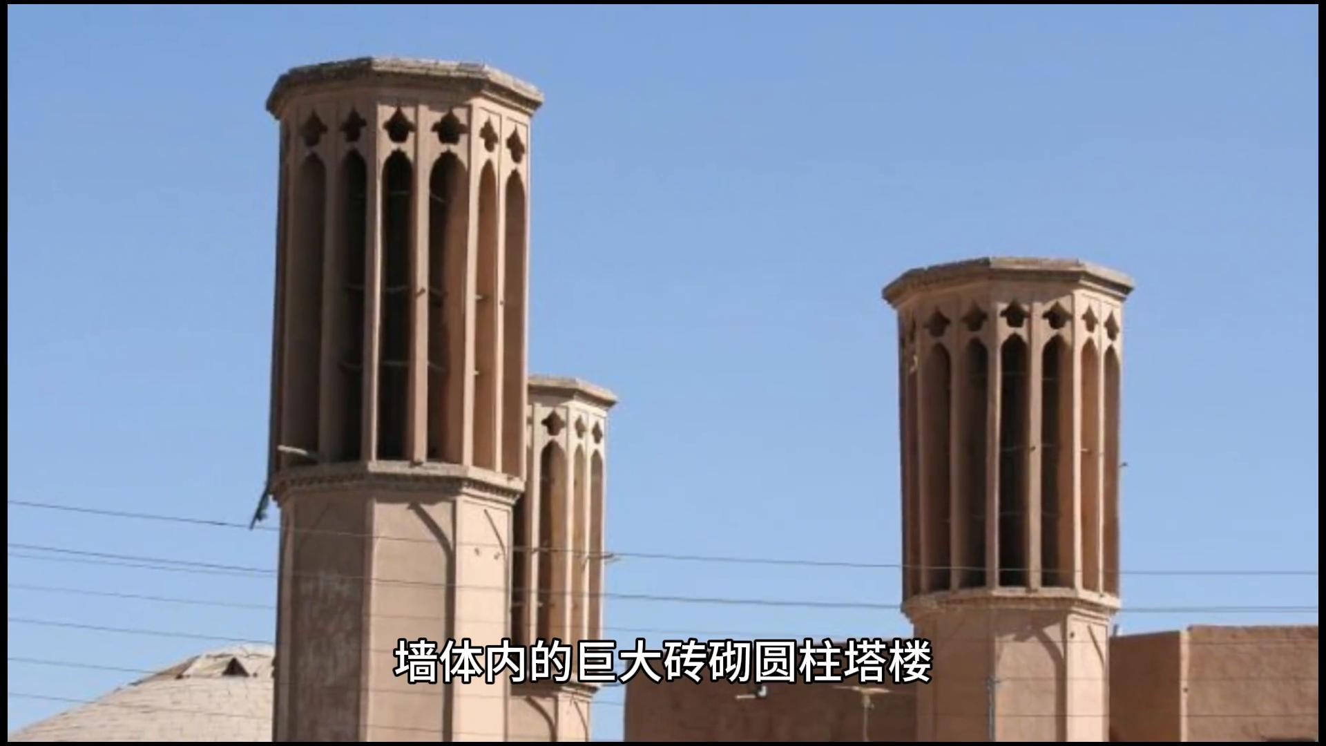 ·8.塔楼与新月:主墓室四周有四座半嵌墙体内的巨大砖砌圆柱塔楼,塔顶有召唤楼和铁柱高擎的新月,造型精美,庄严肃穆。